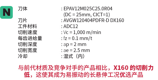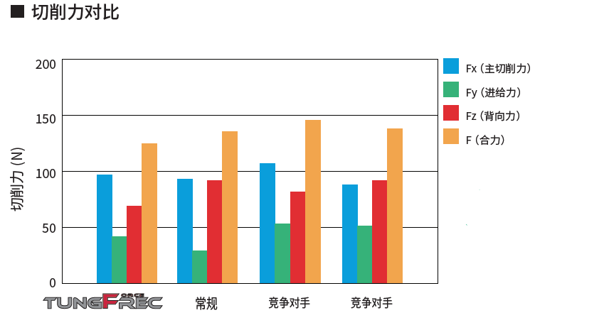 挑战与趋势 在汽车和半导体制造等行业,对铝合金零部件高精度、高效率加工的需求日益增长。然而,在使用BT30加工中心的加工环境中,主轴转速最高限制在10,000转/分钟,这使得进一步提高切削速度变得困难。因此,提升生产率需要通过增加切削刃数量来实现更高的进给率,这进而要求创新的刀具设计。 此前,TungRec11作为一种能够在直径40毫米或更小的立铣刀类型上安装PCD刀片的铣刀可供选择。然而,由于其切削刃数量与同直径的竞争产品相当,难以提出更高效率的加工解决方案。 产品概述 TungForce-Rec是泰珂洛开发的一款高精度、高效率的90°方肩铣刀。其独特的V形刀片座和高刚性刀体设计确保了即使在小直径下也能实现稳定的切削性能。它在包括方肩铣和槽铣在内的广泛应用中,可提供出色的加工精度和生产效率。 优势与特点 特点1:多刃设计,用于高效加工 在相同刀具直径下,采用比竞争对手更多的刃数,提高了每转进给的材料去除量,实现了高效加工。 增加的刃数允许即使在较高进给率下也能实现稳定切削。 即使在小直径范围(DC ≤ 40 mm)内,也能实现高生产率和缩短加工时间。 特点2:兼具高耐磨性和出色锋利性的PCD材质DX160 采用高含量PCD材质DX160,与竞争对手的超细颗粒PCD材质相比,提供了更高的耐磨性。 锋利的切削刃设计实现了平稳切削和低阻力加工。 抑制了切削过程中的毛刺形成,减少了后续工序的工作量。 特点3:实现出色的表面加工质量 每个切削刃的低切削阻力确保了稳定的切削条件。 最大限度地减少刀具振动,降低表面粗糙度。 在铝材和非铁金属的高精度精加工中提供出色的表面质量。 切削性能