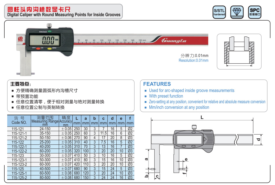 量具>卡尺>内径卡尺>圆柱头数显内沟槽卡尺
