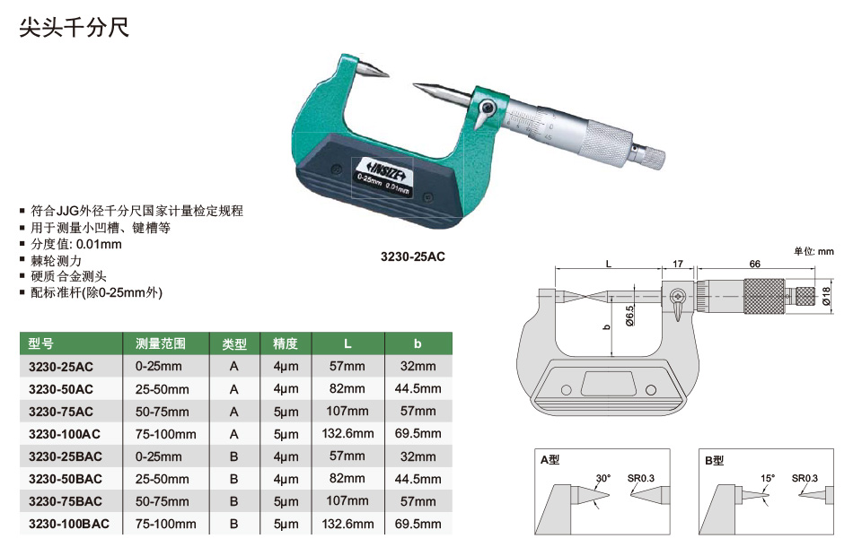 量具>千分尺>尖爪千分尺>尖头千分尺