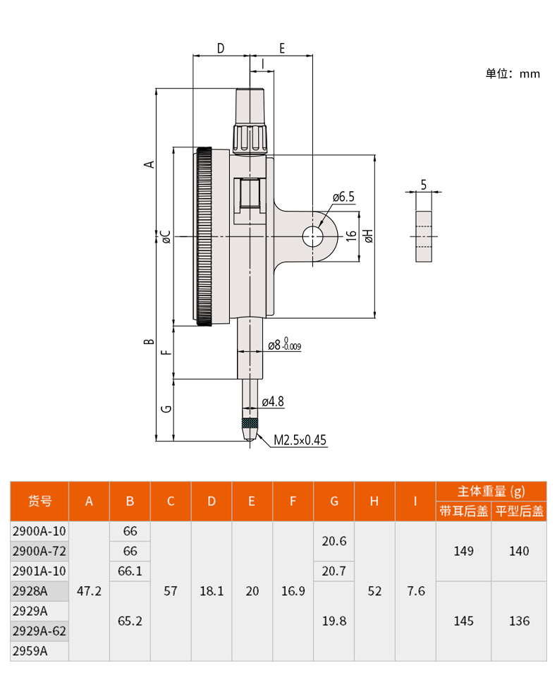 平型后盖对称刻度单转型防震型防尘型